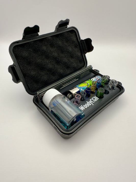 Drehset für Cannabis – Woody’s Rolling Toolbox mit Glastips, Papers & Feuerzeug